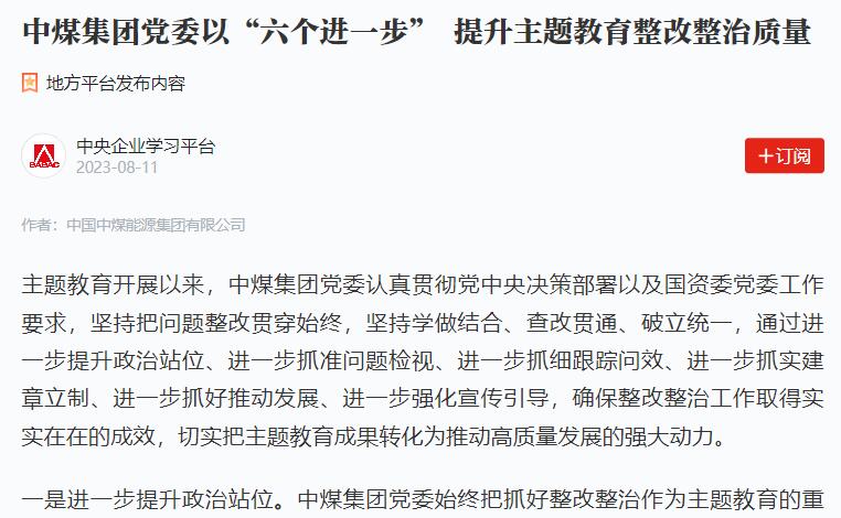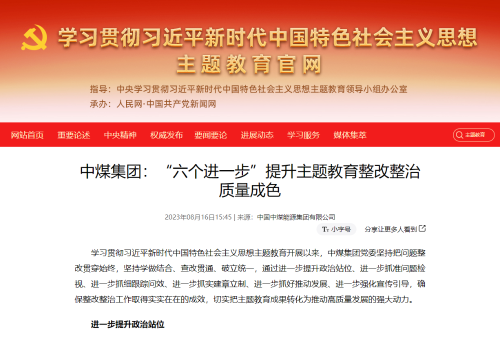 • 【中央主题教育官网】中煤集团:“六个进一步”提升主题教育整改...