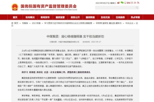 • 【国资委网站】中煤集团:凝心铸魂强根基 实干担当建新功